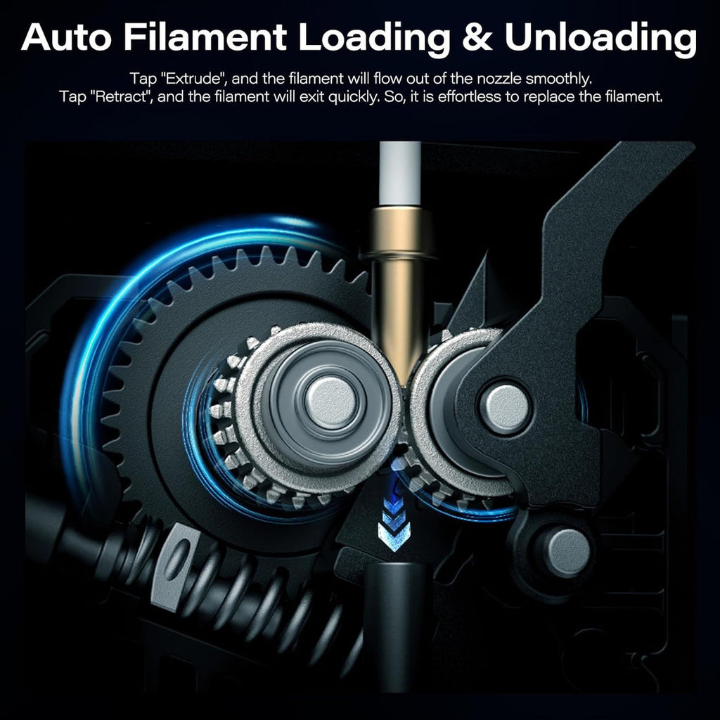- 【Auto Filament Loading and Unloading】Simply tap "Extrude" for smooth filament flow or "Retract" for quick filament removal, making filament replacement a breeze.