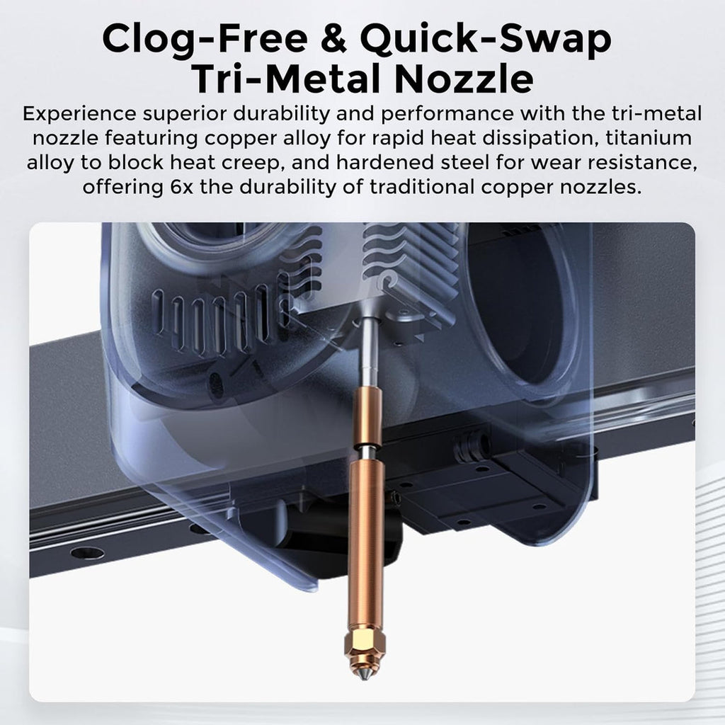 - 【Hyper-Speed Printing & Precision】Achieve ultra-fast prints with speeds up to 500mm/s and acceleration of 12,000mm/s². The all-metal frame and linear rails ensure precise prints with a dimensional accuracy of <0.1mm, even at 300℃ nozzle temperatures.