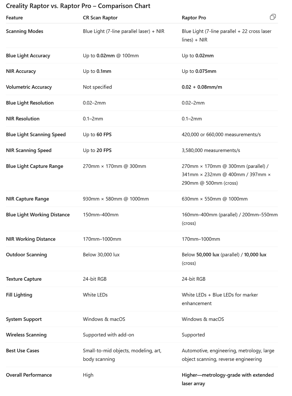 The CR Scan Raptor delivers true industrial-level precision with up to 0.02mm accuracy, making it ideal for everything from tiny components to large objects ranging 5mm to 2000mm. Its advanced imaging system ensures crisp detail capture whether you’re scanning coins, mechanical parts, or full assemblies.