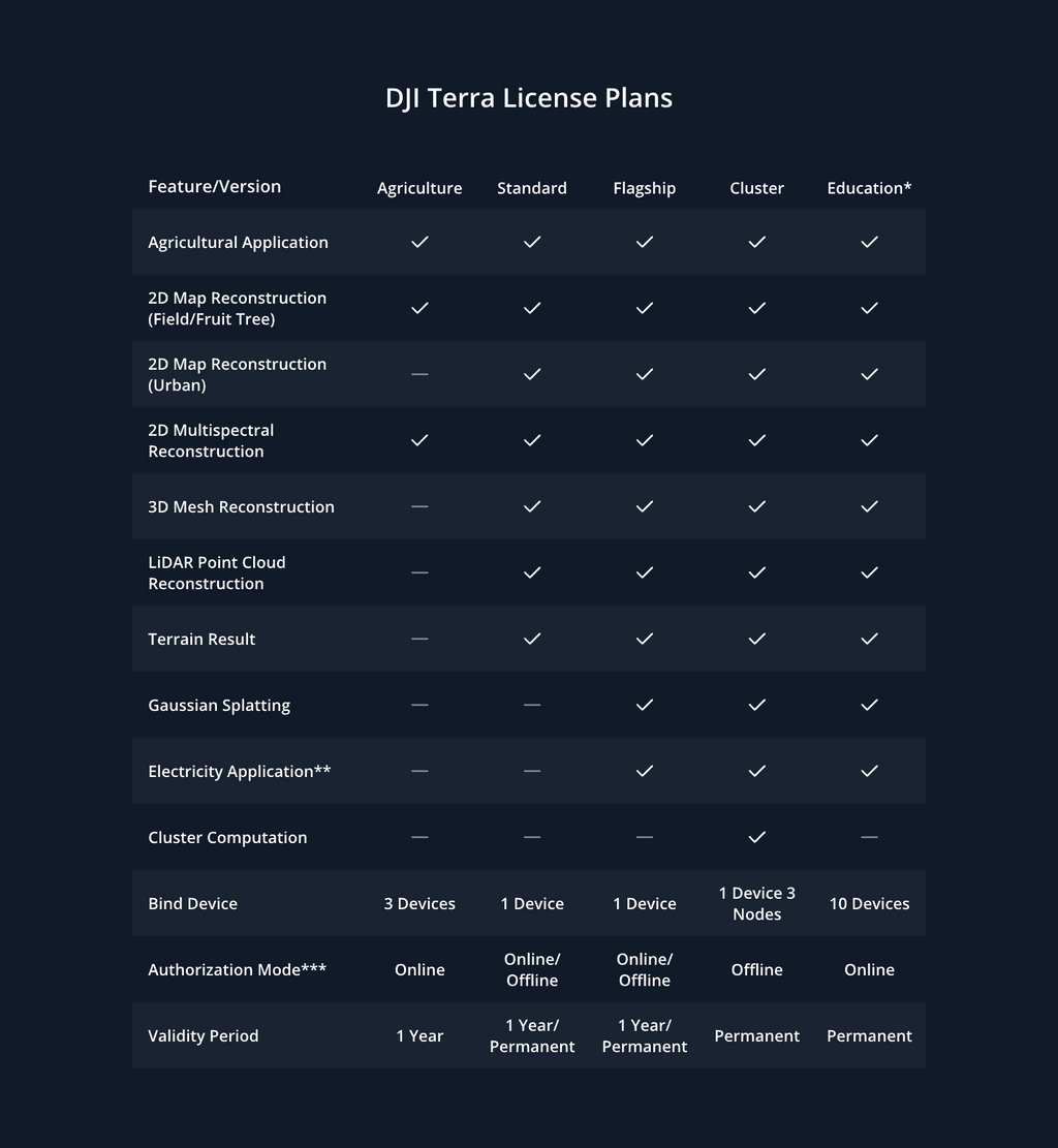 [4] Only online licenses are available in DJI Store. Please ensure network connectivity when you use the software. Each license can be bound to only one DJI account and one computer, and the account that is bound to a license cannot be changed.